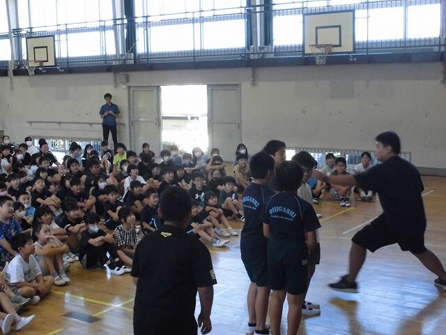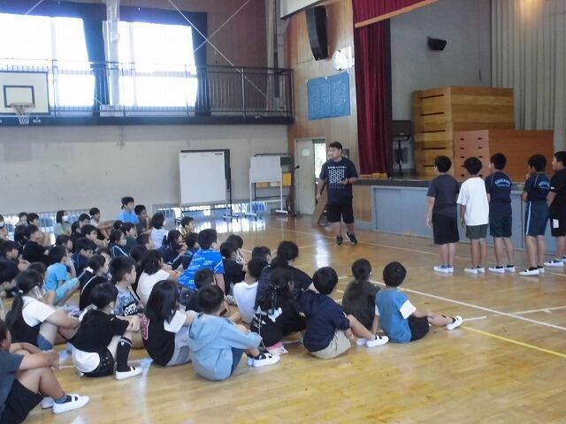 第2回避難訓練を実施しました。今回は火災ではなく、不審者対応の訓練を行いました。不審者が校舎内に侵入し、子どもたちへ危害を加える恐れがあるため、体育館に避難しました。子どもたちは放送の指示をしっかり聞き整然と避難することができました。その後、全体会を行い、係の先生から「いか・の・お・す・し」など不審者から身を守るための仕方について話を聞きました。