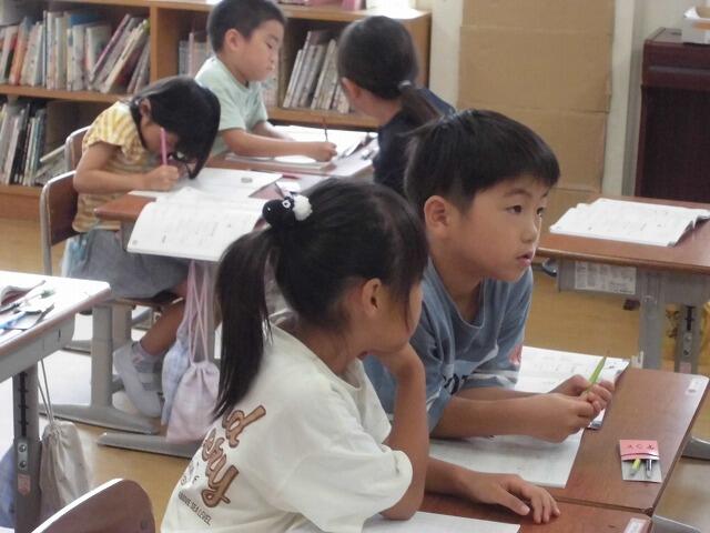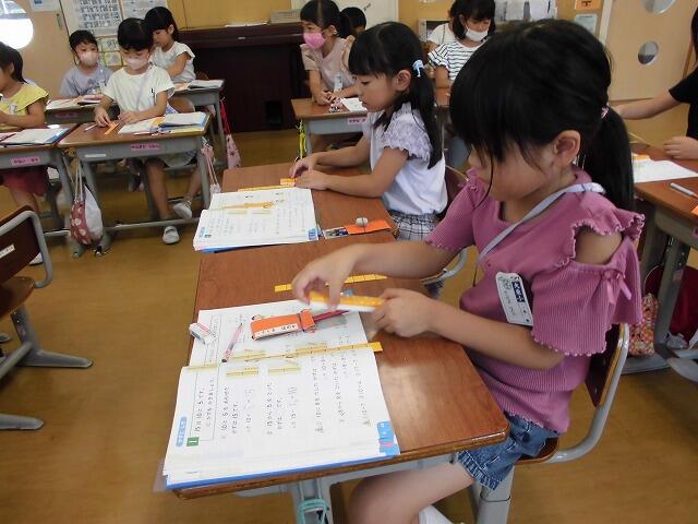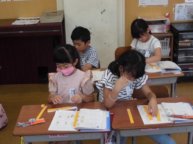 2年生では、全ての授業でペア学習を行っています。課題についての考えや学習内容などをお互いに相手に伝えることで理解を深めるようにしています。今日の算数でも、ひき算の筆算で途中の位に「0」がある場合の繰り下げの仕方について話し合いました。