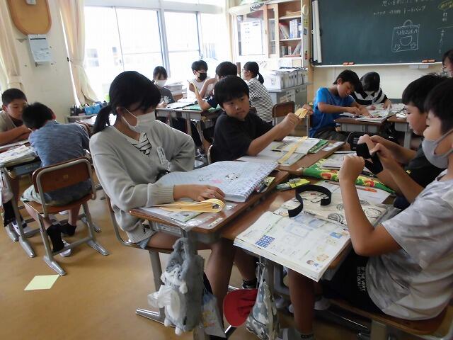 6年生では家庭科の学習で「バック製作」が始まりました。自分だけのオリジナルで、こんなバックがあったらすてきだなと思えるものを作り上げるために、今日の授業ではどんなバックにするかアイディアをまとめました。6年間の学校生活の思い出の一つとして、自分の思いを形に作り上げていきます。
