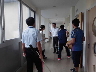 学校の職員玄関より不審者が侵入した場合の対応と避難の仕方を学習しました。