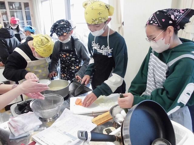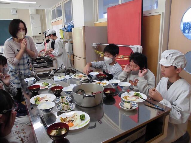 2024年12月9日 11時18分6年生が家庭科の調理実習に取り組みました。今回の目標は、「一食分の食事」です。ご飯、味噌汁、おかずと栄養のバランスがとれた献立を考え、事前に手順を計画しておきました。さすがは6年生。慣れた手つきで手際よく調理していました。自分たちがたてた献立。会食では、とてもおいしそうに食べていました。
