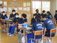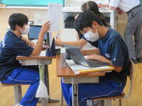 2023年7月19日 16時40分本日、2年2組で校内授業研修が行われました。英語の授業で『must』を使った英作文を作成する内容でした。