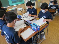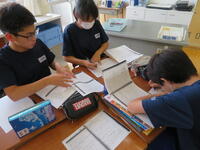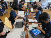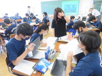 英語では苦手とされている英作文ですが、生徒の皆さんは配布資料やタブレットなどを使いながら、グループで協力して課題に取り組んでいました。ぜひ、今回の内容を生かして様々な英作文に挑戦してもらいたいと思います。
