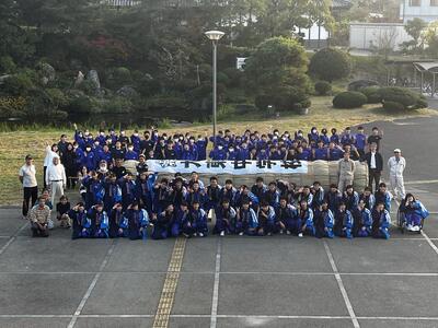三年生を中心に行ってきた松明が完成しました。今年は一部全校生徒が協力しながら作成し、立派な松明ができました。