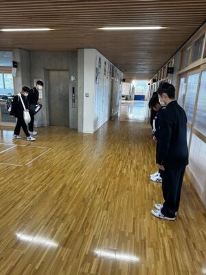 本日より、生徒会役員が挨拶運動の実施方法を変更し、明るい大東中を目指そうと各フロアで始まりました。
