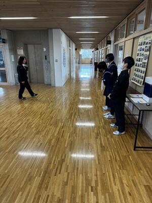 2023年11月20日 08時25分本日より、生徒会役員が挨拶運動の実施方法を変更し、明るい大東中を目指そうと各フロアで始まりました。
