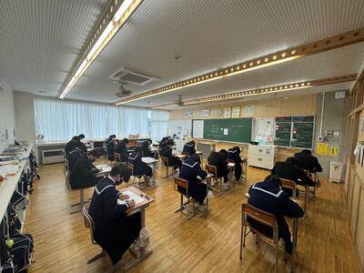 2023年11月28日 14時30分本日、1・2年生は2学期期末テストが行われました。2学期の評定にも関わるため、生徒の皆さんは最後までペンを走らせながら、問題を解いていました。