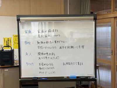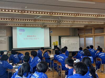 2023年11月30日 17時30分本日、2年生で薬物乱用防止教室が行われました。学校薬剤師である、吉田弥生先生が講師としてきてくださり、『薬物乱用とはなにか』『なぜ使用してしまうのか』『使用したらどうなるか』などのお話を具体的にお話ししてくださり、対処方法についても説明をしてくださいました。