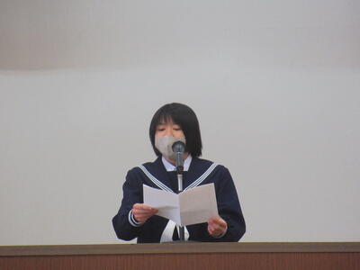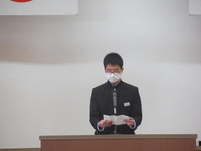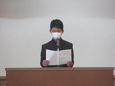 生徒発表では各学年の代表から新年の抱負を発表してもらいました。『責任感』『部活動への思い』『受験に対する取り組み』などについて発表しました。