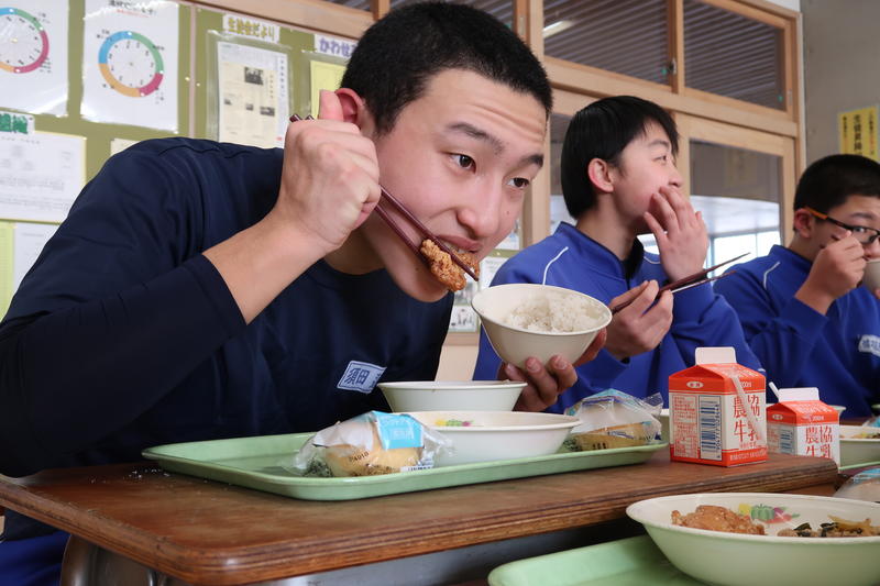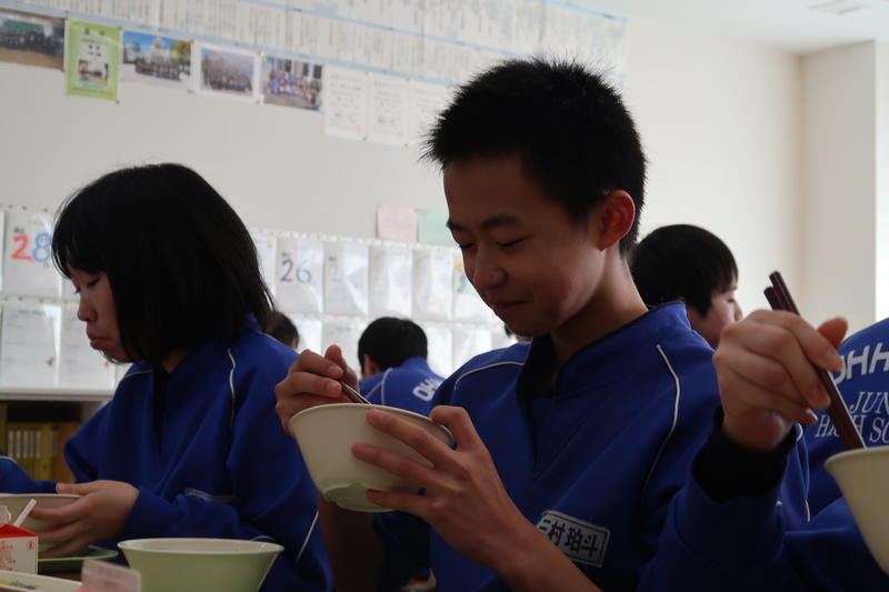 2020年2月27日 08時08分 本校の給食は、調理員さんと関係の皆さんのご努力によりとてもとてもおいしいです。生徒の皆さんも、教職員も給食を毎日楽しみにしています。そういった中でのまたお楽しみが「お楽しみ献立」という企画があります。学級ごとに、献立のリクエストをお願いし調理していただくというものです。上の写真はそのメニューですがとてもおいしそうです。生徒の皆さんも本当においしそうに食べている様子が印象的です。おいしい食事をいただけるということは本当にありがたく幸せなことです。ごちそうさまです。