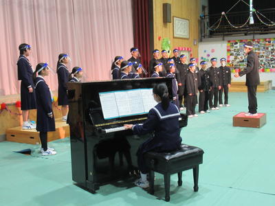 2020年10月17日 12時08分10:00からは、合唱発表会が行われました。今年度は、感染予防が前提にあるため、例年のようなコンクール形式で賞をつけるのではなく、これまでの練習の成果を披露する発表会の形式をとりました。