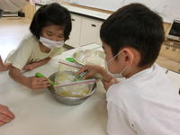 液体状のものがシャーベットに変わっていくと子どもたちからは、「はやく食べたい。」という声が聞こえてきました。