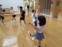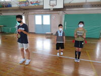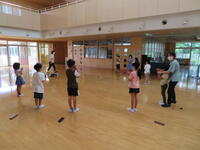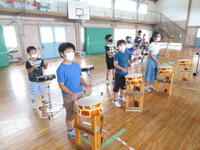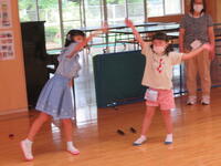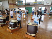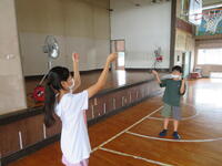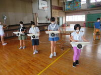 練習では、中・高学年が体育館で役割分担や移動のしかたを確認し、曲の練習を行いました。下学年は、多目的ホールで曲に合わせながら踊りの練習をしました。夏休み前に行う最後の練習でしたが、どの学年の児童も気合いが入っていました。