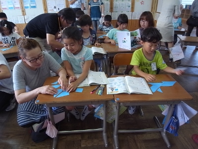 3年生は算数、親子で「形づくり」に挑戦しました。楽しそうですね。