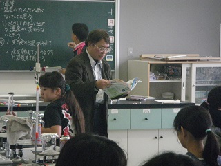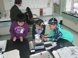 今日は3校時目、4年生の授業で支援をしていただきました。水を熱したときの変化を調べる実験です。山川先生から実験上の注意を聞き、その後真剣な表情で実験を進めていました。(長)