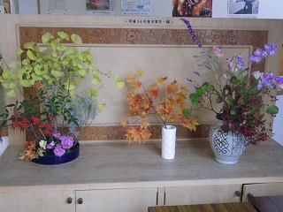 2017年11月2日 09時15分今週の昇降口の花です。秋の風情が感じられます。(長)