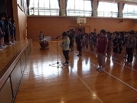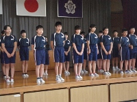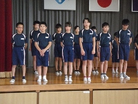 2015年10月6日 08時41分 今日は快晴、稲刈り日和、ここ米どころ白江地区でも稲刈りの最盛期をむかえています。農家の皆さんは、さぞお忙しいところだと思います。さて、明日は第2回のいわせ地区陸上交流大会が鏡石町の鳥見山陸上競技場で開催されます。それに先立ち、昨日、全校生で陸上参加選手の壮行会を実施しました。児童会の松なみ委員、特に5年生が中心になって進み、参加選手の種目の自己紹介、応援のエール、励ましの言葉、決意の言葉などが続きました.明日は天候も心配なさそうですので、ぜひ、夏休み明け以来の練習の成果をあげてほしいですね。明日、5年生、6年生は早朝、学校集合が6時40分です。お弁当・スパイクなどの忘れ物がないようにね。がんばれ、白江っ子!