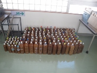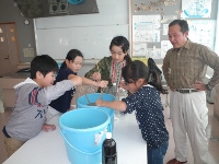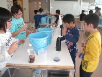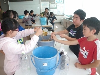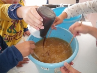 2015年11月6日 07時49分 朝晩の冷え込みが厳しくなってきましたね。今朝は霧がひどく、郡山方面から通勤している職員が「視界が悪くて大変だった」と話していました。通勤、気をつけてくださいね。さて、5日には4年生が石井孝幸さんの指導のもとにEM活性液作りをしました。持参した米のとぎ汁にEM菌の原液をまぜて薄くしてつくりました。4年生が全校生にとぎ汁の協力をよびかけたところ、予定よりたくさん集めることができました。このEM活性液は、しばらく発酵させた後に本校のプールにまく予定です。そうすると翌年のプール清掃の時には、汚泥が少なく、においもほんの少しで、清掃がしやすくなっています。とぎ汁のご協力、ありがとうございました。