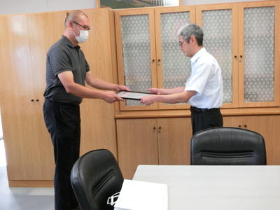2020年7月22日 17時43分16:00より、校長室において現PTA会長の本多宏様から前PTA会長の安藤孝志様に感謝状を贈呈いたしました。予定では、4月10日(金)の授業参観実施後に贈呈式を行う予定でしたが、コロナウイルス感染拡大に伴い実施できませんでしたので、本日実施する運びとなりました。安藤孝志様におかれましては、白江小学校のPTA活動に尽力していただきました。大変お世話になりました。