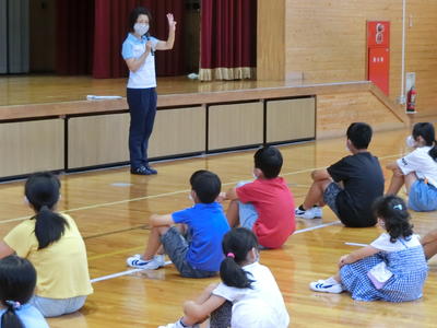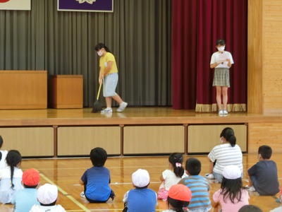 2020年8月31日 16時00分13:15より、のびのび広場(体育館)にて、縦割り清掃班顔合わせ会を行いました。本来なら5月に実施する予定でしたが、コロナウイルス感染防止により延期され、本日行うことになりました。校長先生から話をいただいた後、担当教師より、清掃の約束として、「マスクを着用し、あいさつをきちんとすること、縦割り班の人に声をかけるときには、~くん、~さんをつけて、丁寧な言葉遣いをすること」などの話がありました。続いて、6年生による正しい清掃の仕方、悪い清掃の仕方のデモンストレーションが行われ、しっかりと正しい清掃の仕方を理解することができました。明日から、協力し合い、縦割り班で清掃を開始します。