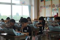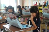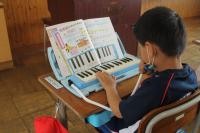 2021年6月2日 10時21分2校時、1年生の教室から、鍵盤ハーモニカの練習をする音色が聞こえてきました。「こんにちは けんばんハーモニカ」という単元の曲「どこどこど」。担任のオルガンに合わせて、「ドドド~ドドド~」と演奏する姿が見られました。写真を撮りに行ったところ、練習の成果を発表してくれた1年生。「教科書を見なくても弾けるよ。」と自信満々なつぶやきをしていた男の子。みんなとても上手でした。「ド」を弾けるようになった1年生。弾ける音がどんどん増えていくのが楽しみですね。子どもたちの「できた!」がたくさん見られた1年生教室でした。