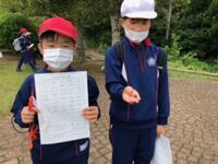 2021年6月22日 13時02分宿泊学習ニュースです。いわきで活動中の4・5年生。午前中は、フィールドビンゴオリエンテーリングを楽しみました。フィールドビンゴオリエンテーリングとは、グループに分かれて、ビンゴカードに書かれている自然の中にある物を協力して見つけ出すゲームです。ルールやコース・注意事項や制限時間などを確認した後、グループごとに出発。写真を見ると、とてもよい天気なようですね。自然の中での活動ということで、おいしい酸素をたっぷりと吸って、パワーを充電することができたことでしょう。イノシシ避けの電線や鉄線などもあるため、危険なところもありますが、写真を見る限り、37名全員がグループの友だちと楽しくゴールすることができたようです。