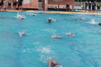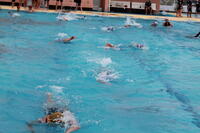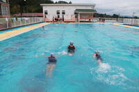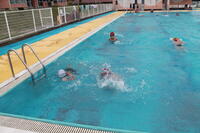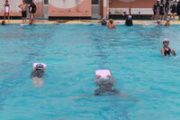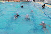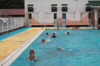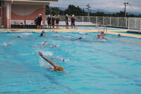 2021年6月30日 17時55分4校時に水泳学習を予定していた5・6年生。学校の水泳学習の基準である気温・水温23℃以上に達していなかったため、4校時は実施することができませんでした。とても残念がっていた5・6年生。5校時に向けて、昼休みに気温・水温を測りに行ったところ、水温は24℃でしたが気温が21℃と、まだ実施することができませんでした。それでも諦めなかった5・6年生。5校時の学習が終わると、「気温と水温を測ってください。」とお願いに来た5・6年生。その結果、水温24.5℃、気温23℃と基準に達していたのです。空を見ると、灰色の雲が見られましたが、雨も降っていなかったため、水泳学習を行うことにしました。どうしても水泳学習をしたかった理由は、きっと7月2日の授業参観日に水泳学習をするからなのかなと思いました。7月2日の天気予報を見ると、授業参観を行う13時頃は、気温22℃の雨のようです。もしも雨で水泳学習ができない場合には、5年生はのびのび広場でハードル走の学習、6年生は分数のわり算の学習をする予定です。保護者の皆様に、水泳学習を見ていただく機会はあまりなかったと思いますので、なんとか天気がよくなることを願っております。てるてるぼうずを作るのもいいですね。水着・水泳帽子・ゴーグルなどの忘れがあると、水泳学習を見学することになりますので、授業参観日に忘れないように、おうちでもひと声かけていただきたいと思います。