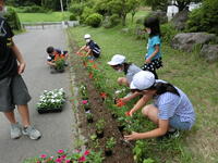 2021年7月1日 07時18分昨日の給食後、環境委員会の4~6年生が、校門から校舎へ続く坂のところに花を植えました。植えた花は、マリーゴールドと日々草の2種類。時間の都合上、職員室側のみ植えました。マリーゴールドなど、まだ植えていない何種類かの花があります。用務員さんと協力しながら、今後も植えていく予定です。花のある校舎は、素敵ですね。花を見て「きれいだな。」「素敵だな。」と感じる心を、いつまでも大切にしていきたいですね。環境委員会の皆さん、ありがとうございました。