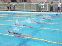2021年7月13日 15時35分15日は、校内水泳記録会ですね。天気予報を見たところ、今のところ「くもり」のようです。気温は28度で熱中症レベルは「警戒」のようです。降水確率も20%くらいのようで、なんとか実施できそうです。しかし、ここ最近は突然激しい雨が降るため、予定通り実施できるか心配なところです。7月2日の学年懇談会や学年便りなどで、保護者の皆様にお知らせしておりますが、今年度の校内水泳記録会は、保護者の皆様の参観をご遠慮いただくことにしております。子どもたちはマスクを取っての水泳学習になりますので、コロナウイルス感染防止対策として、プールサイトやプールの中でも友だちとの間隔を1~2mあけて実施しています。そのため、保護者の皆様が参観できる場所の確保が難しく、大変残念ではありますが、今年度はご遠慮いただくことになりました。基本的に15日に実施する校内水泳記録会ですが、1・2年生が同時に小プールで記録会を実施すると、密になってしまうため、1・2年生は別々に実施することになりました。今のところの校内水泳記録会の実施予定日をお知らせします。天気の都合により、変更することもあります。14日(水)2校時→2年生。15日(木)2校時→3・4年生。15日(木)3校時→1・5・6年生。朝、家を出る時に、「がんばってね!」とパワーを送ってあげてください。保護者の皆様に参観をご遠慮いただくことになりましたので、ホームページで様子をお伝えしたいと思います。よろしくお願いいたします。この写真は、2年前の校内水泳記録会のものです。