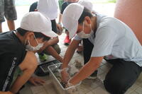 2021年7月15日 13時11分1校時は、6年生と理科を学習しました。理科の授業の日は、このところずっと雨が降っていたため、なかなか実施することができなかった「ダンゴムシ」の観察。ダンゴムシを飼育するのを、ずっと楽しみにしていた6年生。そんな6年生の思いが通じたのか、1校時に校庭に出て、ダンゴムシ探しとお部屋つくりを行いました。男女に分かれて捕獲・飼育をしたいという話し合いになり、それぞれ分かれて探し始めました。男子はプールの裏あたりを、女子は3年生が中心となって作っている畑のところを探していました。すると、かなりの数のダンゴムシを発見!あっという間に、ダンゴムシの住みやすい環境を作ることができました。たまたま今日の朝、5年生の女子が「ダンゴムシを飼うことにしました。」と、職員室に報告に来てくれました。その飼育箱を見ると、とても住みやすそうな環境に整えていたので、ダンゴムシも喜んでいたようでした。理科の学習が終わりましたら、速やかにもといた場所に返します。ダンゴムシは、6匹飼育しています。5年生が育てているインゲンマメ。こちらも、ほぼ毎日順調にインゲンマメを収穫することができています。愛情を注ぐと、インゲンマメも期待に応えようと、大きく成長するようです。4年生のヘチマも、順調に育ってきています。夏休み明けには、4年生の子どもたちの身長を超すことでしょう。