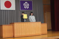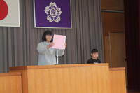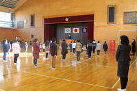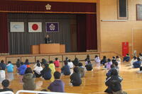 2021年12月23日 11時53分今日の2校時は、第2学期終業式を行いました。昨日まではお休みしていた人もおりましたが、本日は全員出席。全校生揃って、83日間の締めくくりをすることができました。とても嬉しく思いました。「2学期の反省・冬休みの抱負と希望の発表」は、1年生の深谷史恩さん、6年生の本田知花さんが発表を行いました。全校生が見つめる中、がんばったこと・冬休みにがんばりたいことを堂々と発表してくれた2名。力みなぎるその発表を聞き、この2学期に経験したことを通して、自信につながったのだと感じました。全校生から大きな拍手をもらい、ほっとした様子が見られました。校歌・愛唱歌の斉唱では、これまで1番のみ歌ってきましたが、マスク着用・友だちとの間隔を前後左右あける・のびのび広場の換気・のびのび広場入場時に手指消毒などのコロナウイルス感染防止対策をしっかりと行い、校歌は3番まで、愛唱歌は2番まで歌いました。全校生で白江小学校の大切な歌である2曲を歌うことができて、素敵な時間となりました。ピアノ演奏は、校歌が6年濵尾莉来さん、愛唱歌が6年本田葉音さんでした。第3学期の始業式のピアノ演奏は、5年生になります。終業式の子どもたちの様子は、話を聞く態度もとても立派でした。暖房は入れていても換気をしているため寒い中ではありましたが、集中した姿に感心させられました。コロナウイルス感染防止を意識した2学期ではありましたが、無事終えることができました。保護者の皆様、大変お世話になりました。2022年も、よろしくお願いいたします。白江小学校の子どもたち、保護者の皆様、教職員にとって、2022年も素敵な1年になりますように。