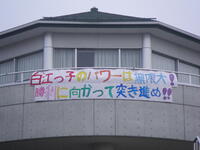 平成28年度 『先にあいさつ 笑顔あふれる白江小』⇒この年は児童会のスローガンを使ったようです。