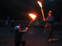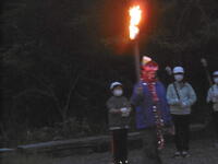 キャンプファイヤーでは、日の女神から①友情②努力③健康の火をいただき、点火を行いました。火の女神からもらった3つの心を大切にしていきたいですね。