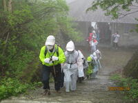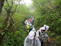 6月14日(火)は、まず茶臼岳登山を行いました。霧と雨の中、子どもたちは合羽を着て登山を開始。霧や雨だけでなく気温が低かったので、途中まで登って下りるルートに変更して実施しました。少し山を登ると、天気も落ち着き、峰の茶屋まで登ることができました。峰の茶屋に着くと、おやつタイム。疲れた体に甘いお菓子が最高のご褒美になりました。予定より早く下山したので、自然の家での自習時間がたっぷりありました。入浴や夕食が終わった後は、キャンプファイヤーを行いました。各班が用意をしたスタンツを発表しました。班の友達と練習してきたことを、他の班の友だちの前で発表するため緊張したことと思いますが、班の発表を楽しもうとする雰囲気があり、素敵な時間になったそうです。『猛獣狩りに行こうよ』ゲームでは、グループ作りをして楽しむことができました。