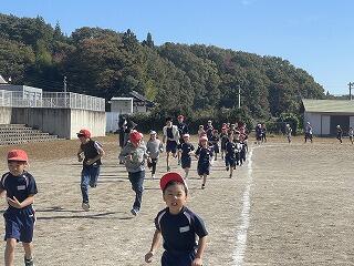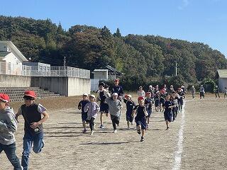 下級生を次々に抜き去っていく上級生、その後ろ姿にあこがれる下級生。全校での取組が生き生きと展開されている場面です。