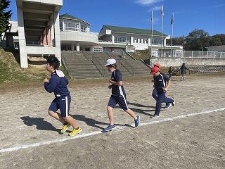 全員での3分間走、そのあとに全力走、最後にクールダウンという活動の流れです。