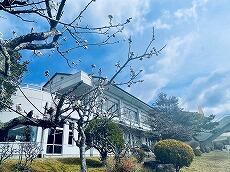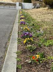2024年3月19日 13時21分校舎の前の梅の花が咲き始めています。パンジーも咲き始めました。