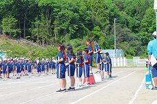 今年のスローガン「心も体も全力疾走 笑顔あふれる運動会」を目指し、正々堂々たたかいますと誓いました。