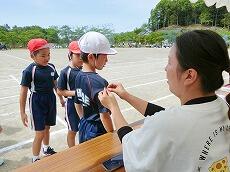 1位、2位にはワッペンが贈られます。PTAのみなさんご協力ありがとうございました。