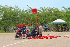 1・2年生の紅白玉入れ。なかなか入らず、みんなの声援も大きくなりました。