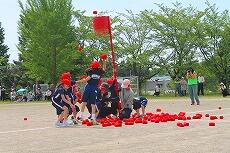 風がでてきたので、ボールがたくさん落ちてしまいましたが、最後まで心を合わせて走りました。