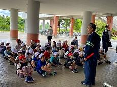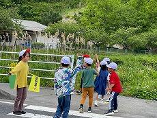 「自分の目で確かめる。」「確かめるのは、車が止まったかどうか。ただ左右を見るだけではだめですよ。」「歩道を歩くときは、縁石から離れて。車に近いところを歩くのは危ないよ。」など、丁寧に教えていただき、子どもたちもしっかりと話を聞いていました。