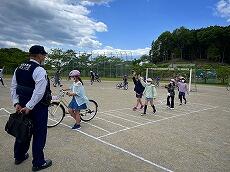 また、自転車で公園等に乗り入れないこと、自転車は移動手段なので道路で遊ぶものではないことなどを駐在所さんからご指導いただきました。