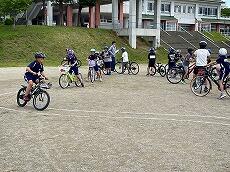 上学年はさすがに自転車の乗り方が上手でした。横断歩道では降りて自転車を押して渡ることを学びました。自転車は軽車両なので、歩行者優先です。歩いている人の安全にも気をつけながら自転車に乗ることが大切であることを学びました。