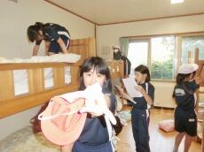 自分たちでシーツやまくらカバーを運び、ベットメイキングをします。