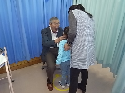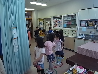 2015年4月27日 10時43分 23日に上学年、24日に下学年の内科検診を実施しました。学校医の熊田先生にお世話になりました。下学年の内科検診では、「お医者さんがみんなの心臓の音を聞いて診断するので静かに待ちましょう。」の指示をしっかり聞いて、上手に並んだり、待ったりすることができました。