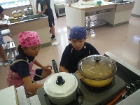 2016年10月27日 11時39分 本日は、先生方の小教研教科部会で午後出張となりますので、子ども達は4年生以外は午前日程となります。ちょうど気持ちの良い秋晴れですので、有意義にすごしてほしいと思います。4年生は、他の学校の先生が来て、社会科の授業を観ていただきます。今までの積み重ねを発揮してくれることと思います。さて、本日は給食がありませんので、5年生がこの機会を生かして「ご飯とみそ汁」の調理実習をしました。特に、ご飯は火加減や時間の勉強もかねて、炊飯器ではなくナベでご飯をたきました。ちょっとお焦げができたようですが、作りたてのご飯、おいしくいただいたようです。よかったね。