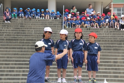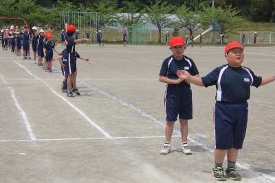2015年5月13日 09時40分 心配していた台風の影響はほとんどなく幸いでしたが、今朝の地震にはびっくりしましたね。震度3ということで、白江小の防火シャッターが1枚しまりました。天候がちょっと心配ですが16日の運動会にむけて練習がいよいよ佳境です。昨日は全校生で岩瀬音頭を踊りました。白江こども園のみなさんが見学に来てくれました。縦割り班で、6年生が下級生に上手に見本を見せながら踊っていました。開会式の1年生の「はじめの言葉」は、とても大きな声で言うことができるようになりました。最後にみんなで校庭の石拾いをしました。16日を楽しみにしていてくださいね。