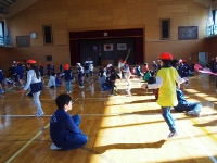 2016年12月13日 09時42分 本校では、体力づくりの一環として「マラソンタイム」を週2回、月曜の業間と水曜の昼休みの取り組んできました。このところ、校庭が除染作業で使えませんので、体育館でなわとびタイムとして実施しています。ちょうど、全校生が体育館でやることができますので、低学年の回数を高学年の子どもたちが数えてあげたりして、面倒をみる姿が見られています。もうすぐ冬休み、この縄跳びタイムの盛り上がりを冬休みの生活でも続けてほしいですね。