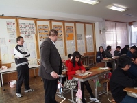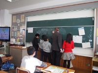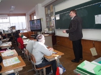 2016年12月15日 08時50分 昨日からの雨が夜中に雪に変わっていて、今朝はびっくりした方が多かったのではないでしょうか。通勤、子どもたちの送りに十分お気をつけてくださいね。6年生は、ALTのショーン先生と英語の学習に真剣に取り組んでいました。あと3ヶ月で中学校で本格的に学ぶことになりますので、真剣さは伝わってきました。黒板の前で、みんなに英語で質問するのですが、照れないでできていました。その調子でがんばっていこうね。
